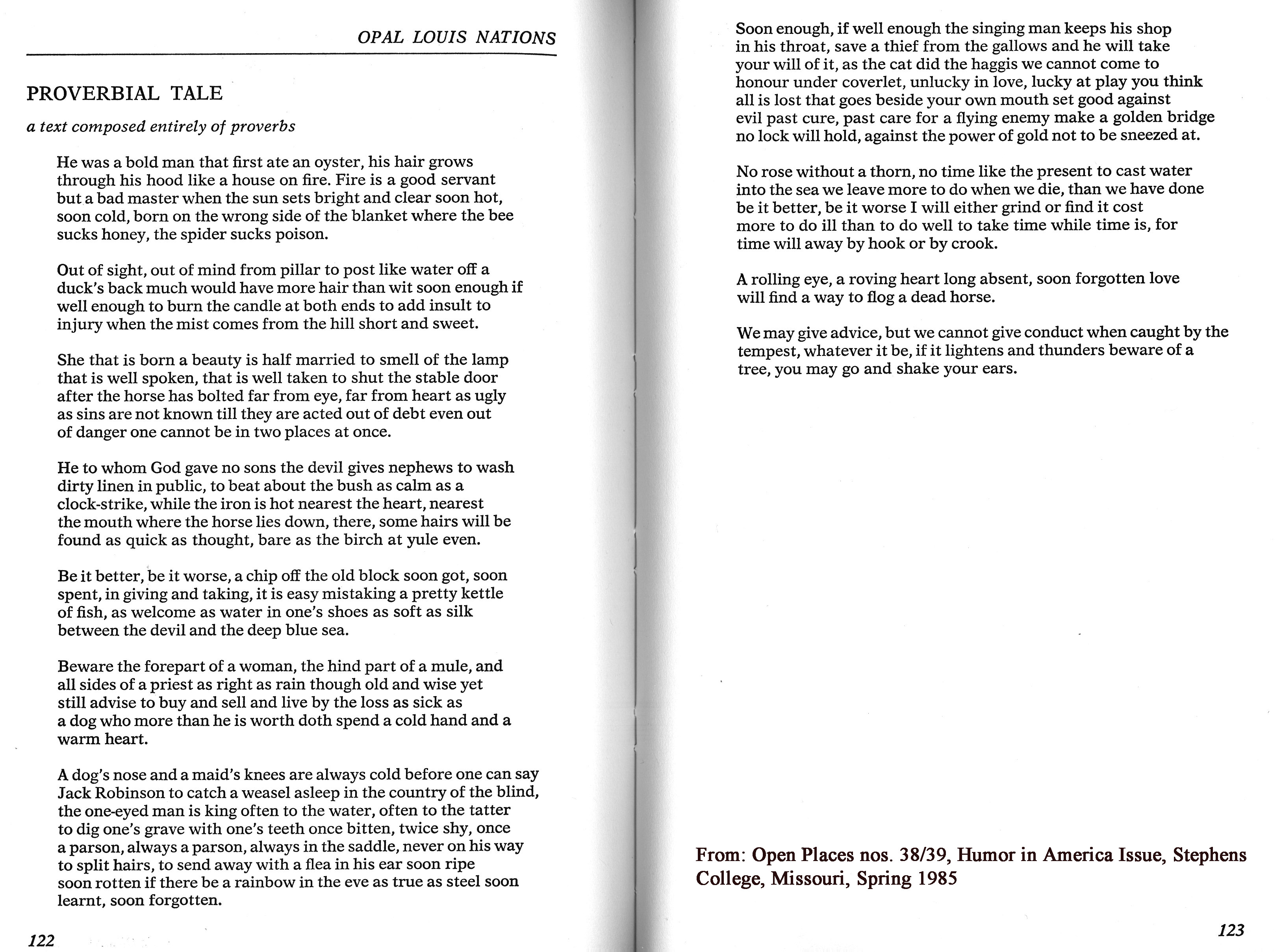 PROVERBIAL TALE -- a text composed entirely of proverbs: |